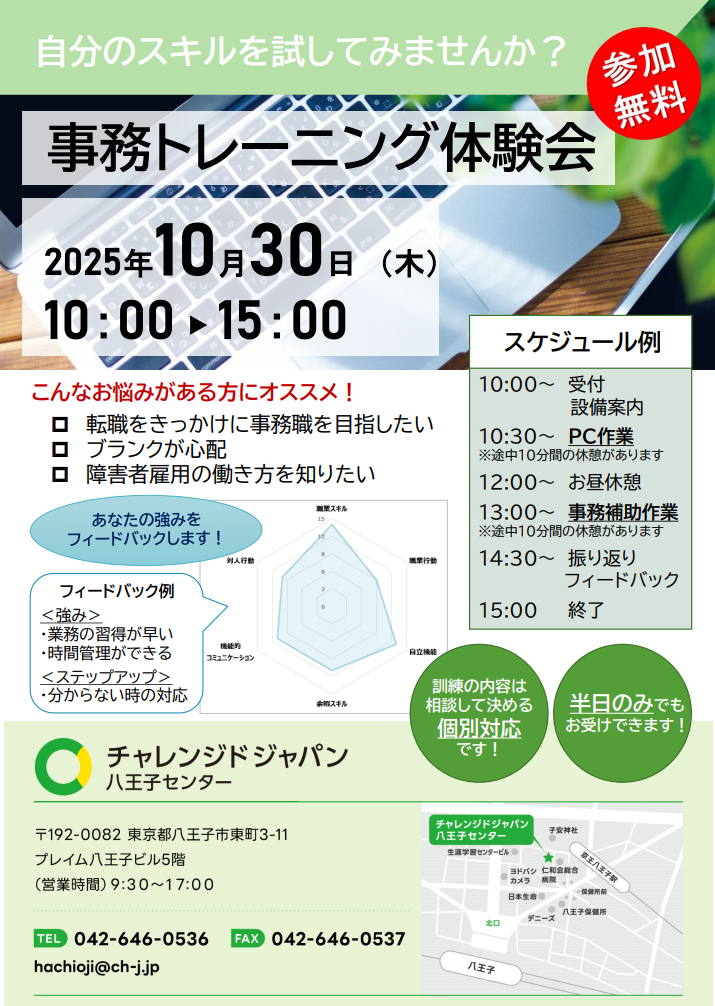 2025年度も後半に入り、日ごとに秋の深まりを感じる季節となりました。時間の流れの速さに少し焦りを感じたり、これから先のことを考えて少し不安になったりする方もいらっしゃるかもしれません。今年度も残りわずかとなるこの時期に、新しい自分への一歩を踏み出してみませんか。今回は、事務職への就職を目指す方や、自分の可能性を広げたいと考えている方に向けて、当事業所で開催する特別なイベント「事務トレーニング体験会」についてご紹介します。