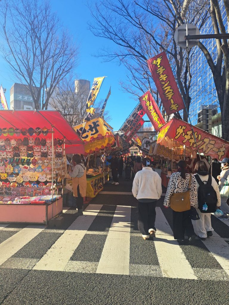 当センターの前には群馬県庁へと続く大きな通りが広がっています。この通りが一年の中でも活気に満ち溢れるのが毎年1月9日に行われる「初市だるま祭り」です。年の初めを飾るこのお祭りでは、群馬の名産品である縁起物の「だるま」が大小さまざまにずらりと並びその鮮やかな赤色が新春の空気に彩りを添えます。通りにはたくさんの屋台も出店し、美味しそうな匂いと人々の楽しげな声が響き渡り街全体がお祝いムードに包まれます。この賑わいは私たちスタッフや利用者さん、前橋市民にとっても心躍る前橋ならではの特別な一日です。