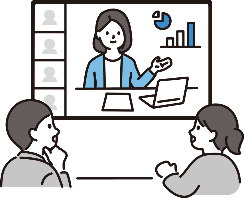 オンラインミーティングとは、パソコンやスマートフォン、タブレットなどの端末とインターネット環境を利用して、場所を問わずに参加できる会議や面談のことです。参加者はそれぞれ別の場所にいながら、専用のツールを使って、音声での会話はもちろん、カメラを通じてお互いの顔を見ながらコミュニケーションを取ることができます。さらに、自分のパソコン画面に表示している資料を他の参加者にも共有する「画面共有」という機能を使えば、全員が同じ資料を手元で確認しながら、スムーズに話を進めることが可能です。これにより、対面での会議と遜色のない、質の高いコミュニケーションが実現できます。